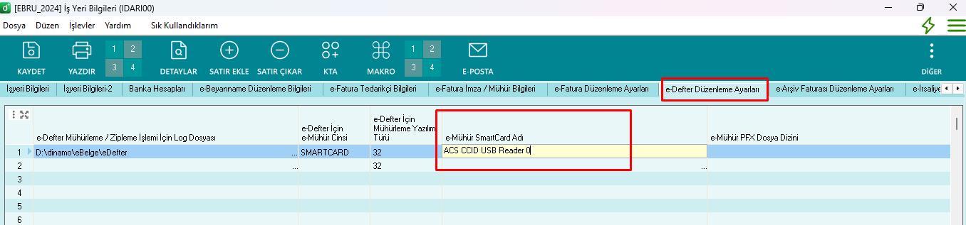 15. Güncellemeden sonra İş Yeri Bilgilerinde yer alan e-defter Düzenleme Ayarları tabında