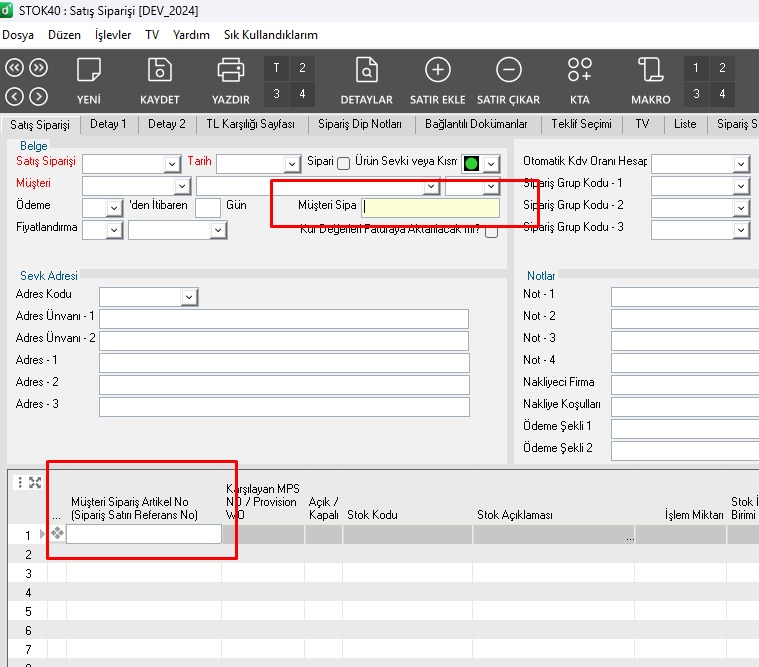 *ASELSAN sipariş mektubundaki line numarası bu alanlardan birine girilmelidir.